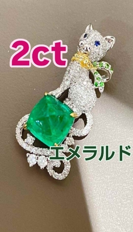 - 2ctシュガーローフ エメラルドキャットペンダント〜プチ豪華ミニジュエリーシリーズ 猫とエメラルドの幸せな出会い―限定一点ものの物語。