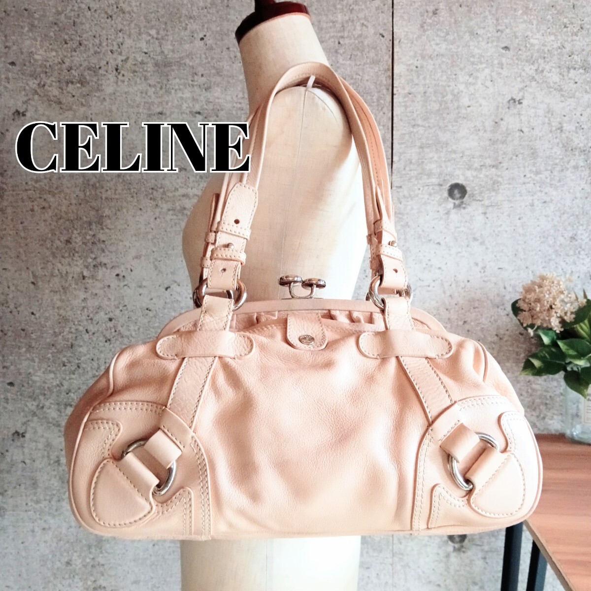 - 美品 セリーヌ がま口 ビンテージ レザー ショルダー ハンド トートバッグ 鞄