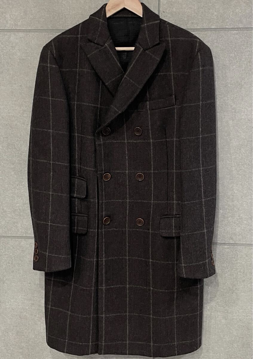 - 上質高級! イタリア製 DOLCE&GABBANA D&G ドルチェアンドガッバーナ チェック ダブル チェスターコート ウール ブラウン系 34/48 新規×