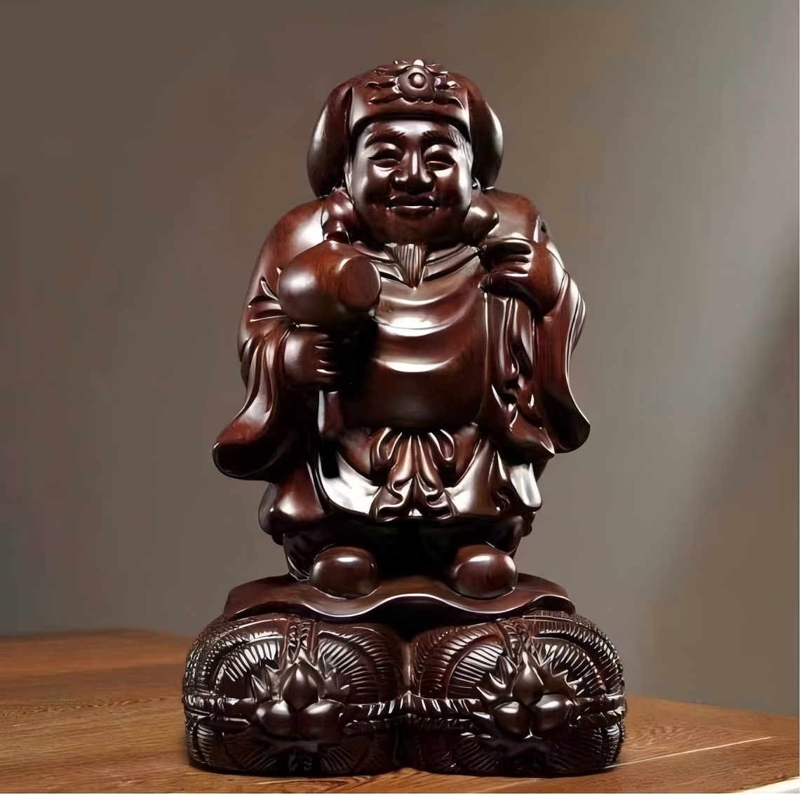 - 高品質★木彫 仏教工芸 精密細工 大黒天立像 精密彫刻 黒檀木 仏師で仕上げ品