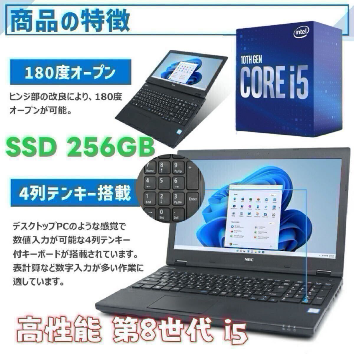 - 機能満載PC/第8世代 i5-8350U/8GB/ SSD256GB/NEC VKM17X-2/VX-2/Office2021/無線Wi-Fi/Bluetooth /カメラ搭載 /テンキー/保証付き/難有り