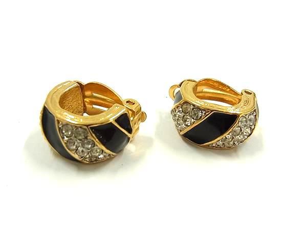 > ■極美品■ NINA RICCI ニナリッチ ラインストーン クリップ式 イヤリング アクセサリー レディース ゴールド系×ブラック系 DI5559