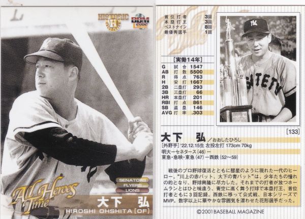 - ●2001BBM 【大下 弘】 オールタイムヒーローズ No.133:西鉄 R