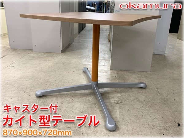 > オカムラ カイト型テーブル アクティアフェロー 十字脚キャスター仕様 ネオウッドミディアム色 Acti@Fellow 【長野発】