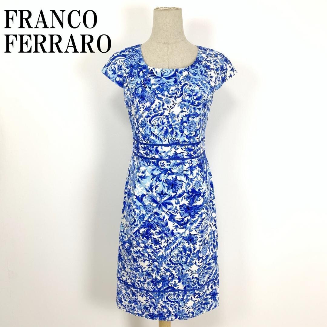 > LA7805 フランコフェラーロ FRANCO FERRARO 花柄 ロングワンピース ストレッチ有 総柄 半袖ワンピース ブルー コットン 3