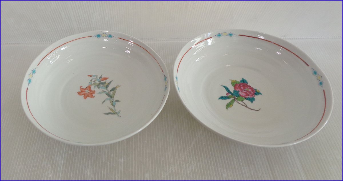 Bana8◆九谷 泉峯 和 プレート 2枚セット 花 食器 皿 陶磁