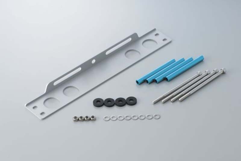 アクティブ ストレートオイルクーラーキット用の汎用ステーに、サイドカラーとボルトをセット。キット設定のない車両へのオイルクーラーの装着をサポートします。
