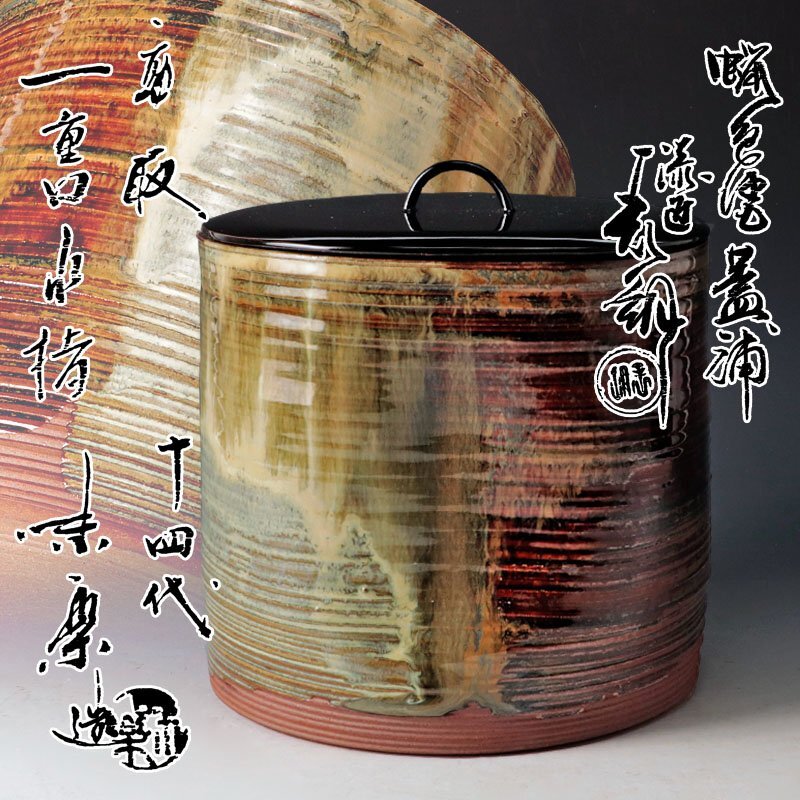 - 【古美味】十四代亀井味楽造 高取一重口水指・鈴木表朔 蝋色塗蓋補 茶道具 保証品 W5Of