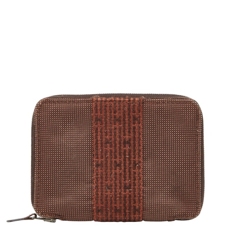 - エルメス エールライン パースPM 二つ折り財布 ラウンドファスナー ブラウン シルバー金具 キャンバス レディース HERMES 【中古】