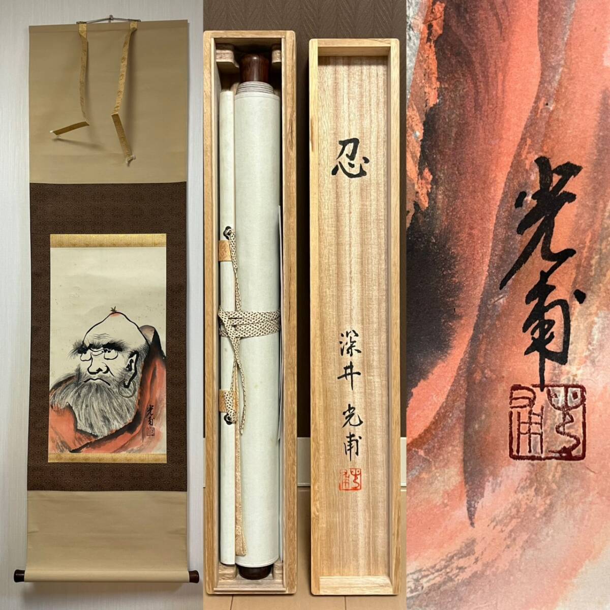 - 【真作】深井光甫 「忍」掛軸 達磨 共箱