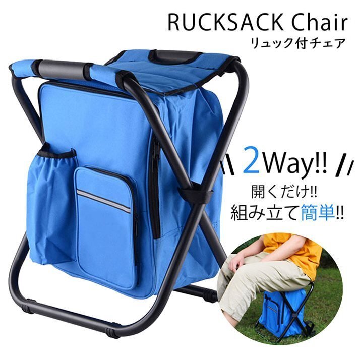 - リュックチェア 折りたたみ 椅子 リュックサック 保冷バッグ 保温 アウトドア 行列 運動会 キャンプ バーベキュー 7990405 ブルー 新品