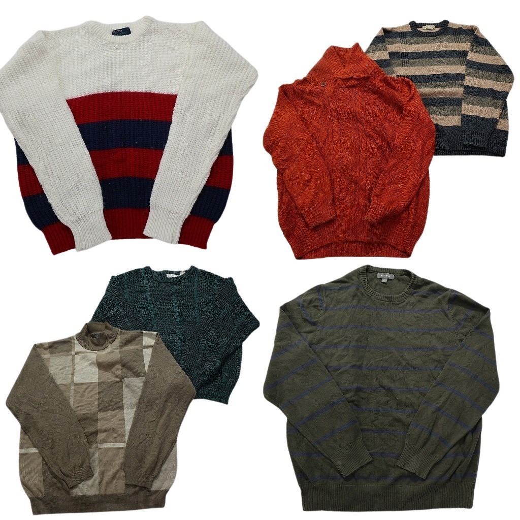 > 古着卸 まとめ売り ニットMIX セーター 6枚セット (メンズ L ) マルチカラー ボーダー ケーブル編み ショールカラー NC3445 1円スタート