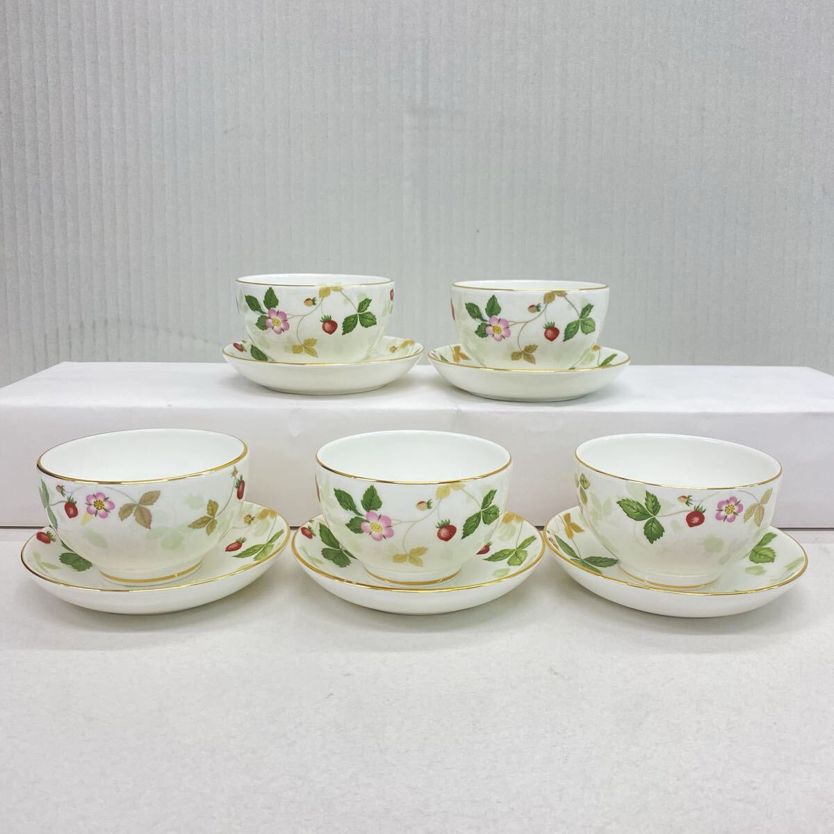 - T21 WEDGWOOD ウェッジウッド WILD STRAWBERRY ワイルドストロベリー カップ&ソーサー 5客セット 茶器 煎茶器 小皿 湯呑み 洋食器