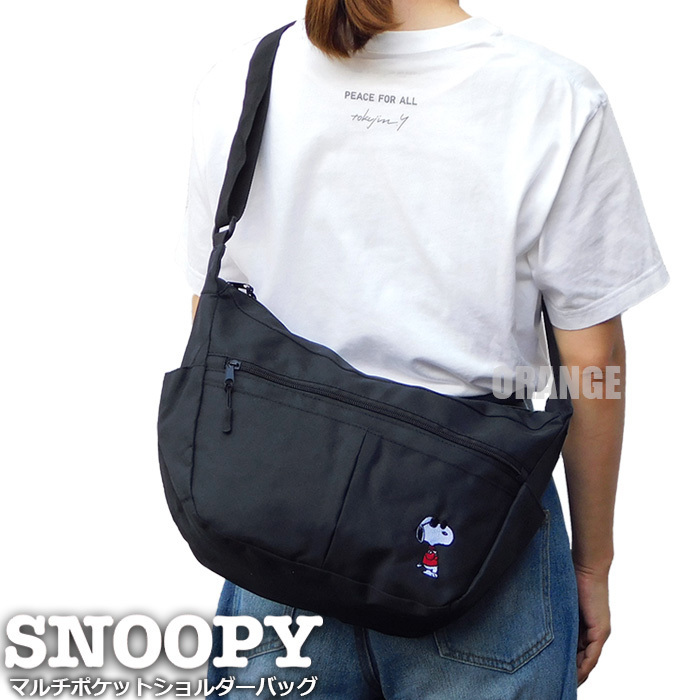 - 送料無料 新品 スヌーピー マルチ ショルダーバッグ レディース メンズ メッセンジャーバッグ 斜めがけバッグ 斜め掛けバッグ 黒□