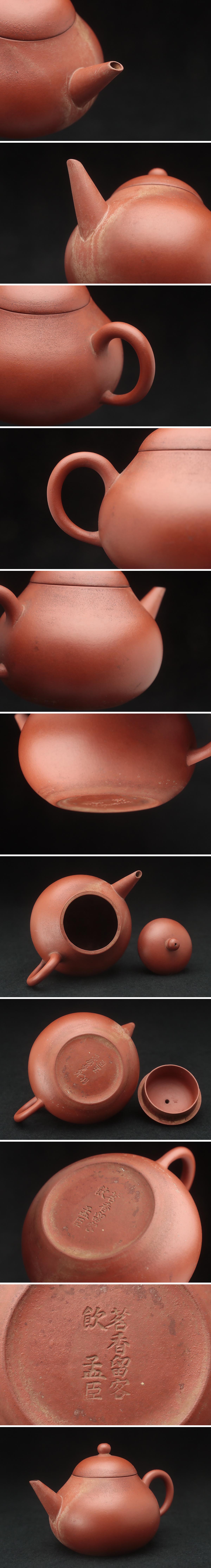 > ZN249 唐物【茗香留客飯 孟臣】朱泥 砲口 急須 幅11.5cm・ 単孔口 朱泥水平壺・孟臣壺 煎茶道具 茶器 中国古陶磁 中国古玩 古美術