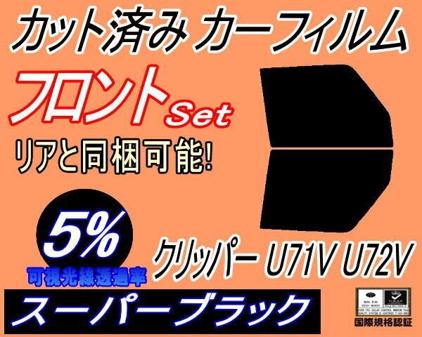 > カーフィルム スーパーブラック カット済み フロントセット クリッパー U71V U72V (b) バン 5ドア用 ニッサン ガラスフィルム