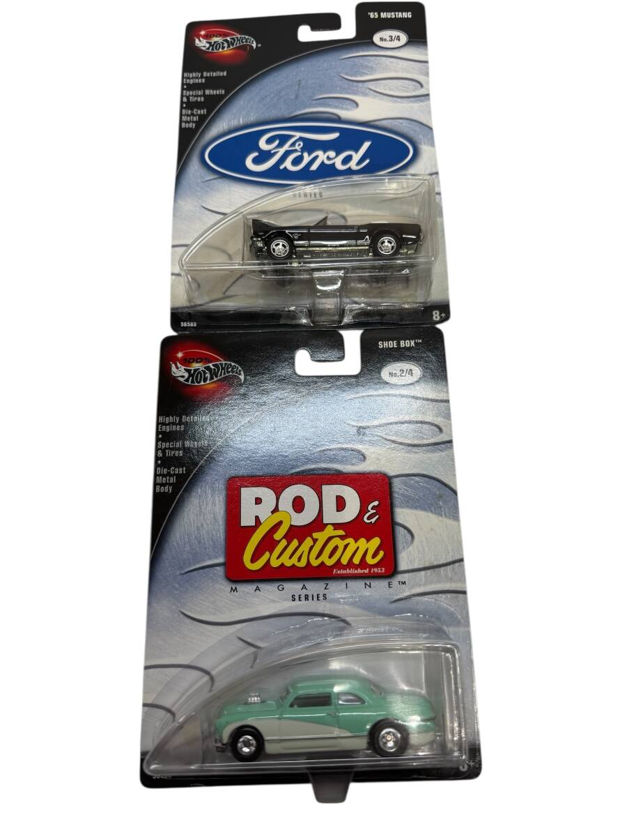 - ●S7-10-390 ホットウィール 『フォード ‘65 マスタング』『ロッド&カスタム マガジンシリーズ シューボックス』2台おまとめ 未開封