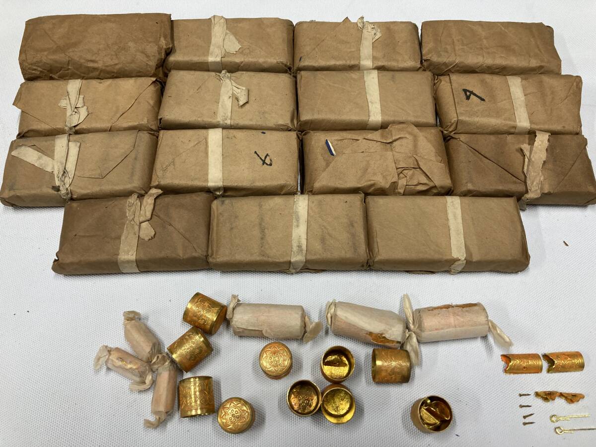 - 「9774」軸先止め金具 約80セット 八双金具 仏画 花柄 古画 古玩 掛軸 軸先 時代
