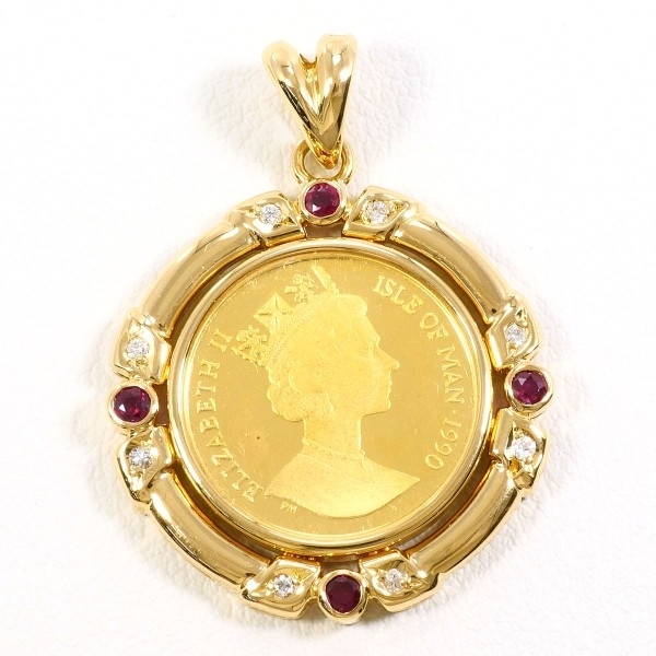- マン島キャット 1/10oz 1/10オンス コイン 金貨 K24YG K18YG ペンダントトップ ルビー 0.21 ダイヤ 0.08 カード鑑別書 総重量約7.7g☆0315
