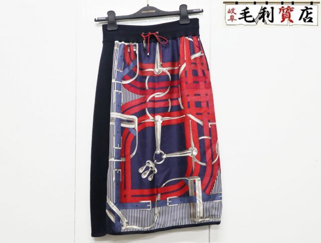 > エルメス HERMES ゴルチエ期 ニットスカート ひざ丈 ウール シルク ネイビー レッド サイズ38 【中古】 スカート