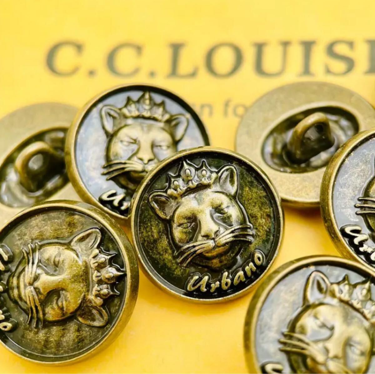 - 【ハンドメイド材料】ボタン 5個セット 猫 王冠 アンティーク 個性的 高品質 手芸 ヴィンテージ メタルボタン 手芸材料