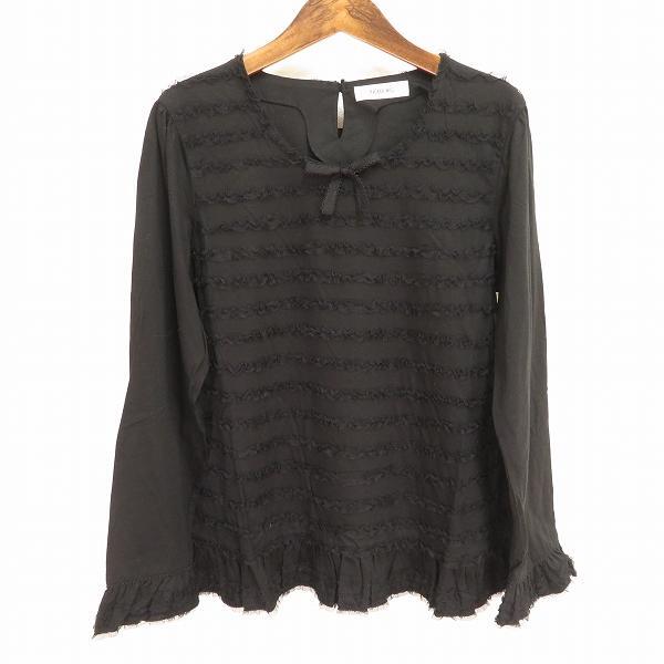 - #anc インゲボルグ INGEBORG カットソー 長袖 11号 黒 ブラック フリル リボン タグ付き 美品 レディース [919230] k01