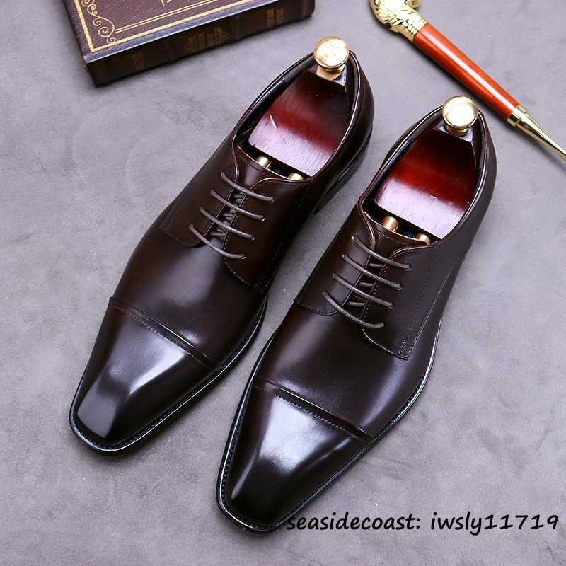 > 定価9万超◆レザーシューズ メンズ 本革 紳士靴 ビジネスシューズ 高級牛革 職人手作り 冠婚葬祭 革靴 フォーマル 新品 珈琲色 24.5cm