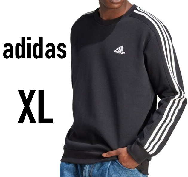 > (アディ4)定価6,050円 アディダス 裏起毛 スウェットシャツ トレーナー DTN89 黒 メンズXL 秋冬向け
