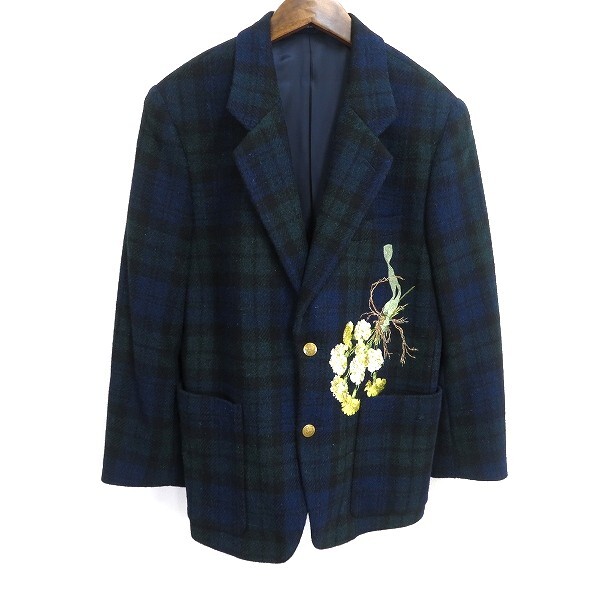 > #wu ワンダフルワールド WONDERFUL WORLD カネコイサオ ジャケット ウール 100% タータンチェック カーネーション 刺繍 金釦 [970639] k01