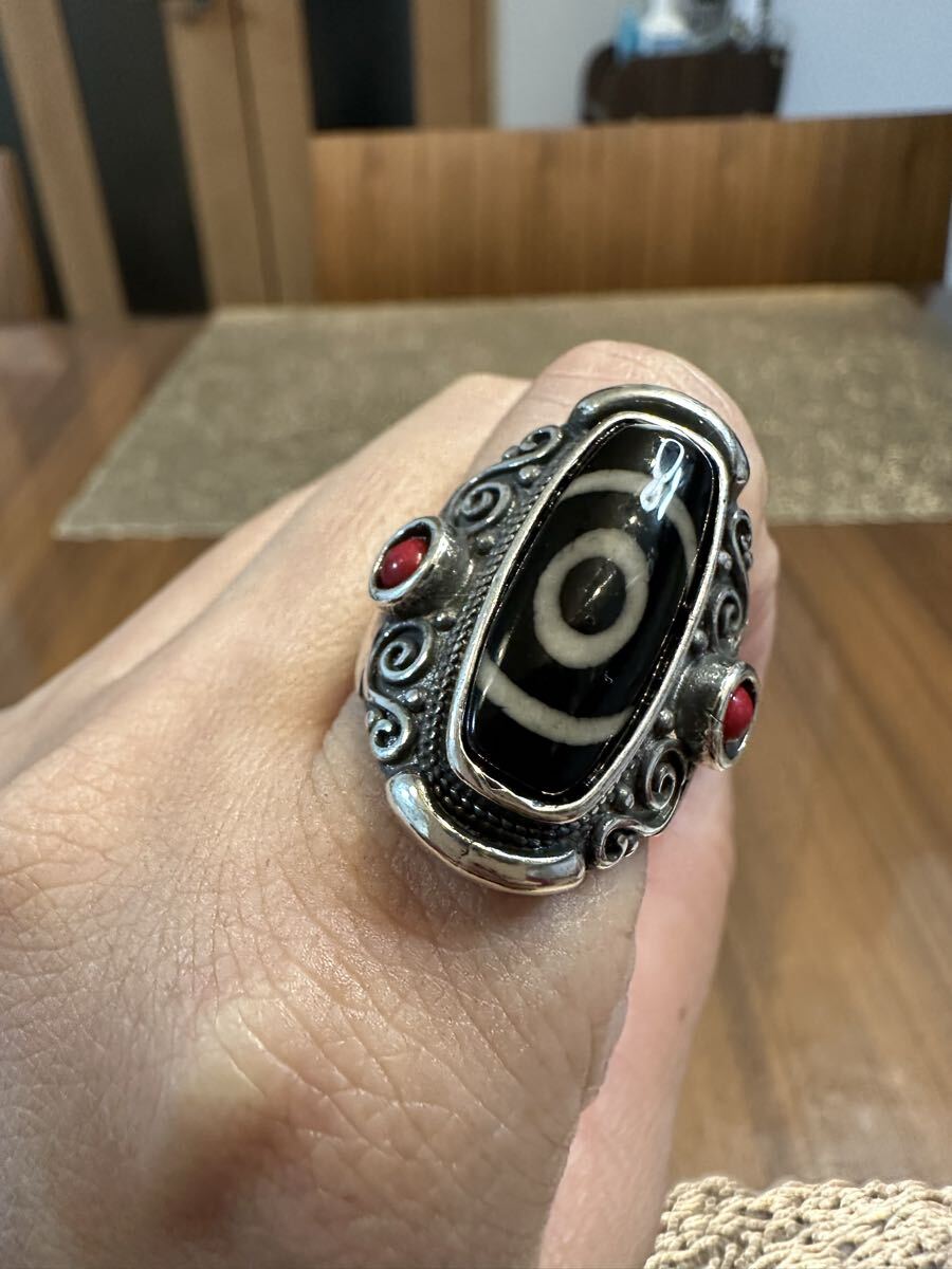 - K-701 -3 チベット 一眼天珠 藏銀 リング 指輪 フリーサイズ