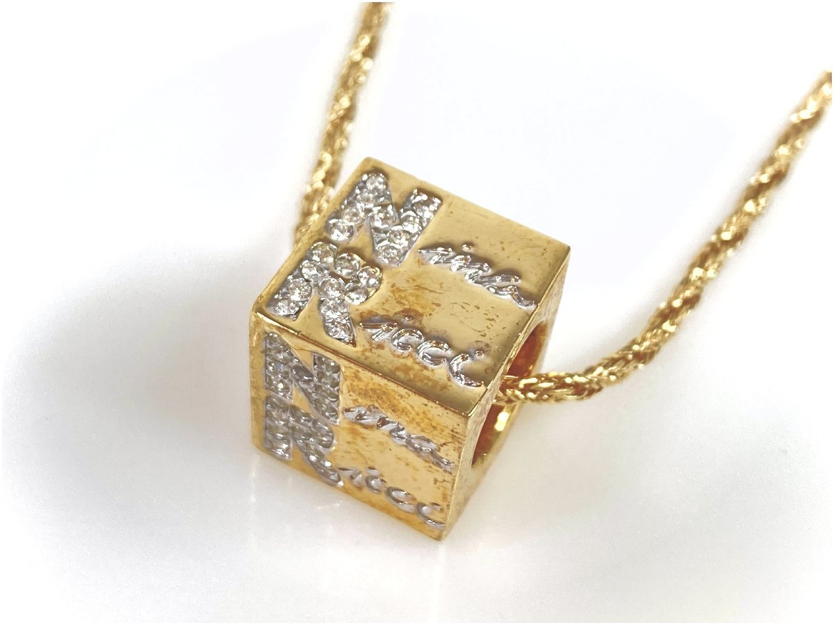 > ニナリッチ NINA RICCI ロゴ ラインストーン キューブ ロングチェーン ネックレス ゴールドカラー YAS-6045