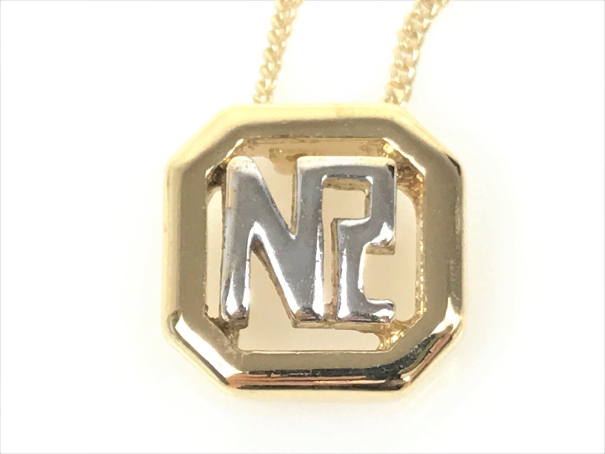 - 美品 ニナリッチ NINA RICCI ロゴ スクエア ネックレス ゴールドカラー×シルバーカラー YAS-8197