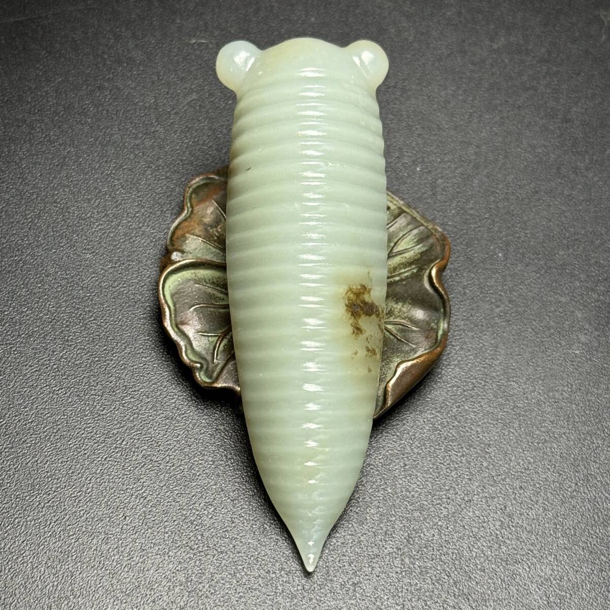 - ◆珍蔵◆中国古美術 清時代 古白玉 和田玉彫り蝉 蟠龍碗 細密細工造 置物 古賞物 骨董品 時代物 A17