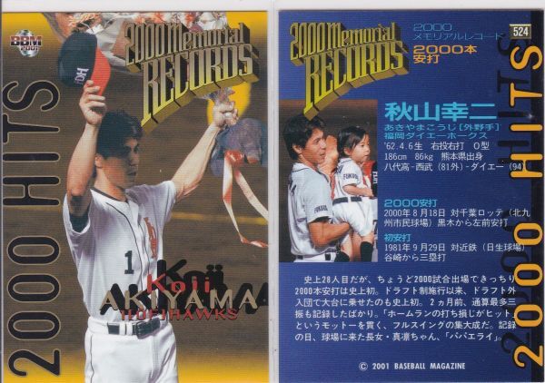 > ●2001BBM【秋山 幸ニ】 Memorial RECORDS:2000本安打:ホークス R7