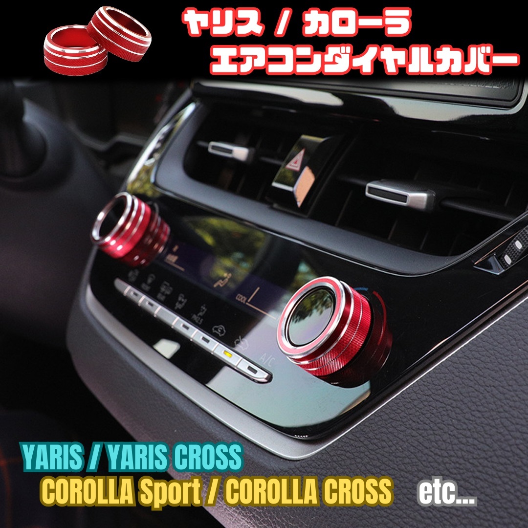 > 【ヤリス 10系】 エアコンダイヤルカバー / レッド / トヨタ カローラ 210系 スポーツ ツーリング クロス セダン 等対応 / 両面テープ
