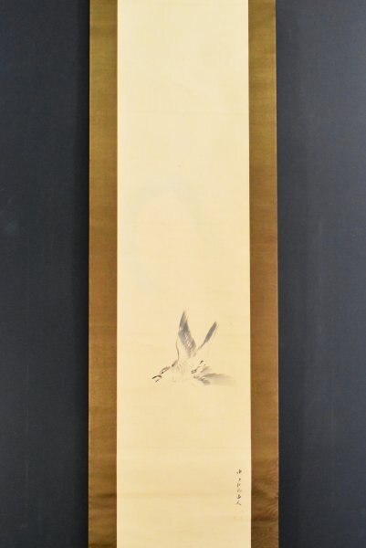 - K6018 模写 川崎小虎「月に郭公」紙本 合箱 小堀鞆音師事 川﨑千虎 カッコウ 小禽 日本画 茶掛 中国 書画 掛軸 掛け軸 人が書いたもの