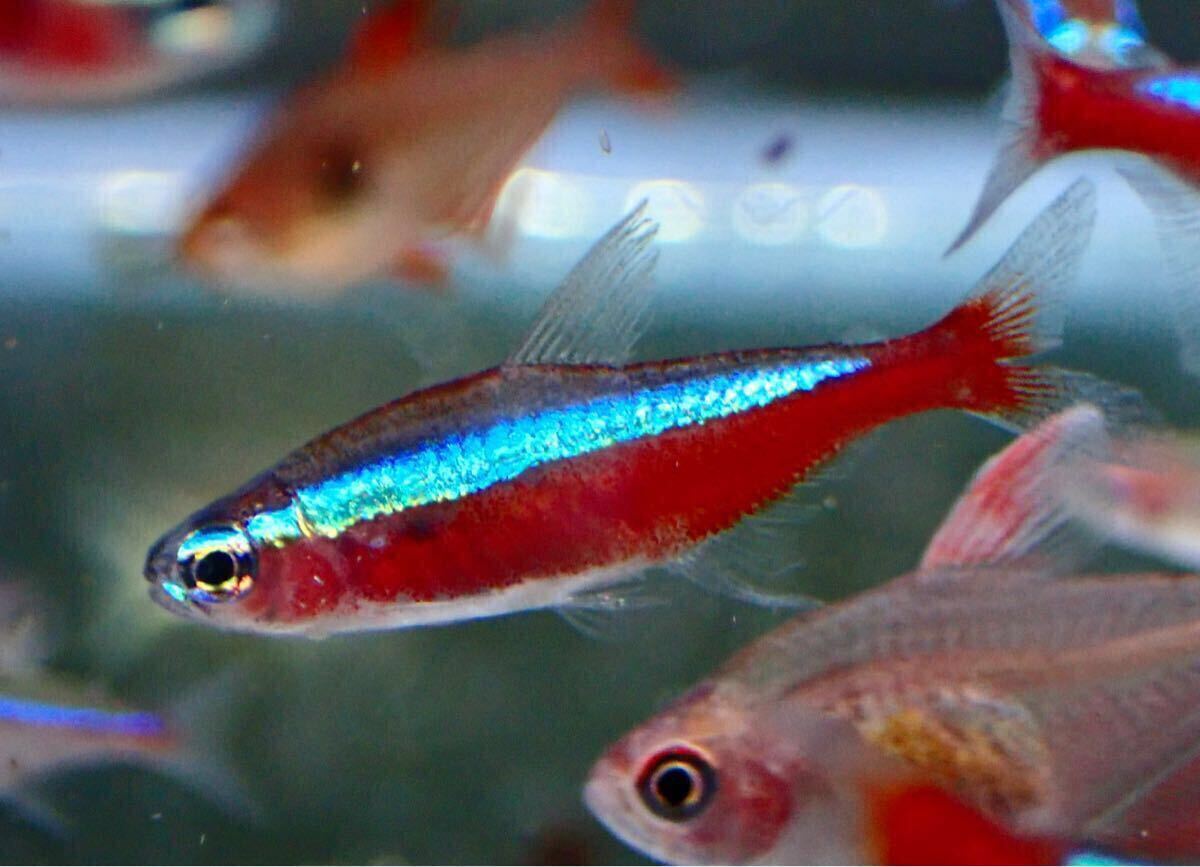 - 【アクアリウムのある暮らし】(熱帯魚) カージナルテトラ ブリード 50匹 サンプル画像 小型魚 水草 カラシン 淡水魚 2250