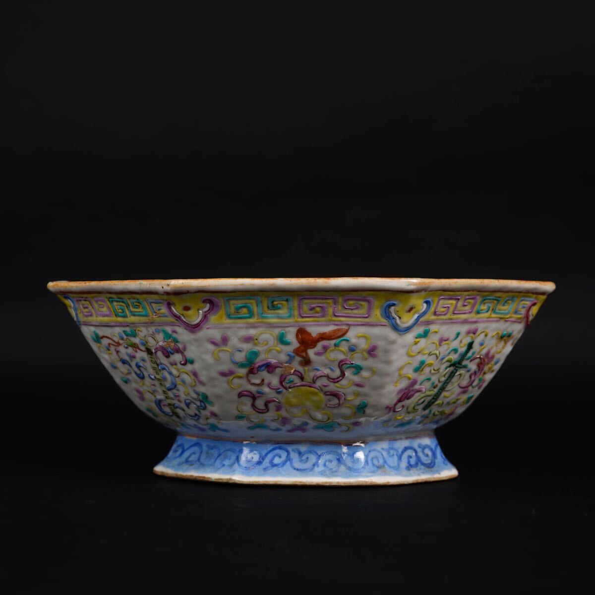 > 【後】FC010 「同治年製」色絵七宝文八方碗 古美術 骨董品 古玩 時代物 古道具 中国美術品 朝鮮美術品 日本美術品