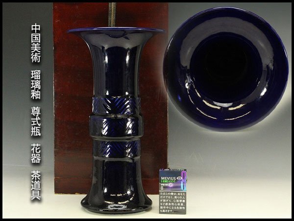 > 【銀閣】中国美術 瑠璃釉 尊式瓶 高37cm 花器 茶道具 旧家蔵出 送料無料(YC1)