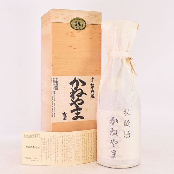 > 大阪府内発送限定 泡盛 秘蔵酒 かねやま 古酒 十五年貯蔵 *冊子 箱付 ※ 720ml/1,104g 43% 山川酒造 J260454