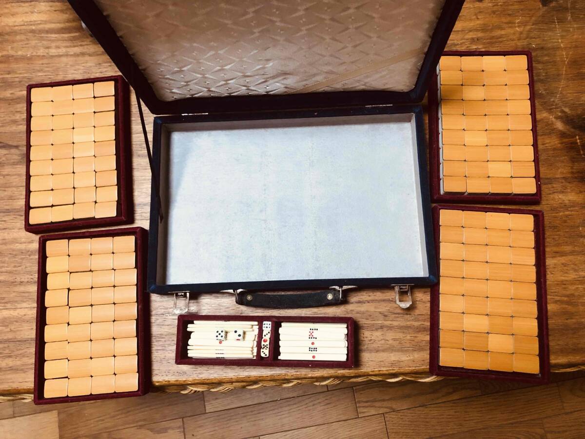 - 【希少/美品】竹背 麻雀牌 セット 昭和レトロ 40年代頃 ケース付き マージャン 年代物 古い麻雀牌 竹牌 マージャンセット コレクション