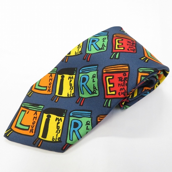 - #ae カステルバジャック Castelbajac ネクタイ 紺系 マルチ 総柄 ブック柄 カラフル シルク イタリア製 メンズ [972560] k01