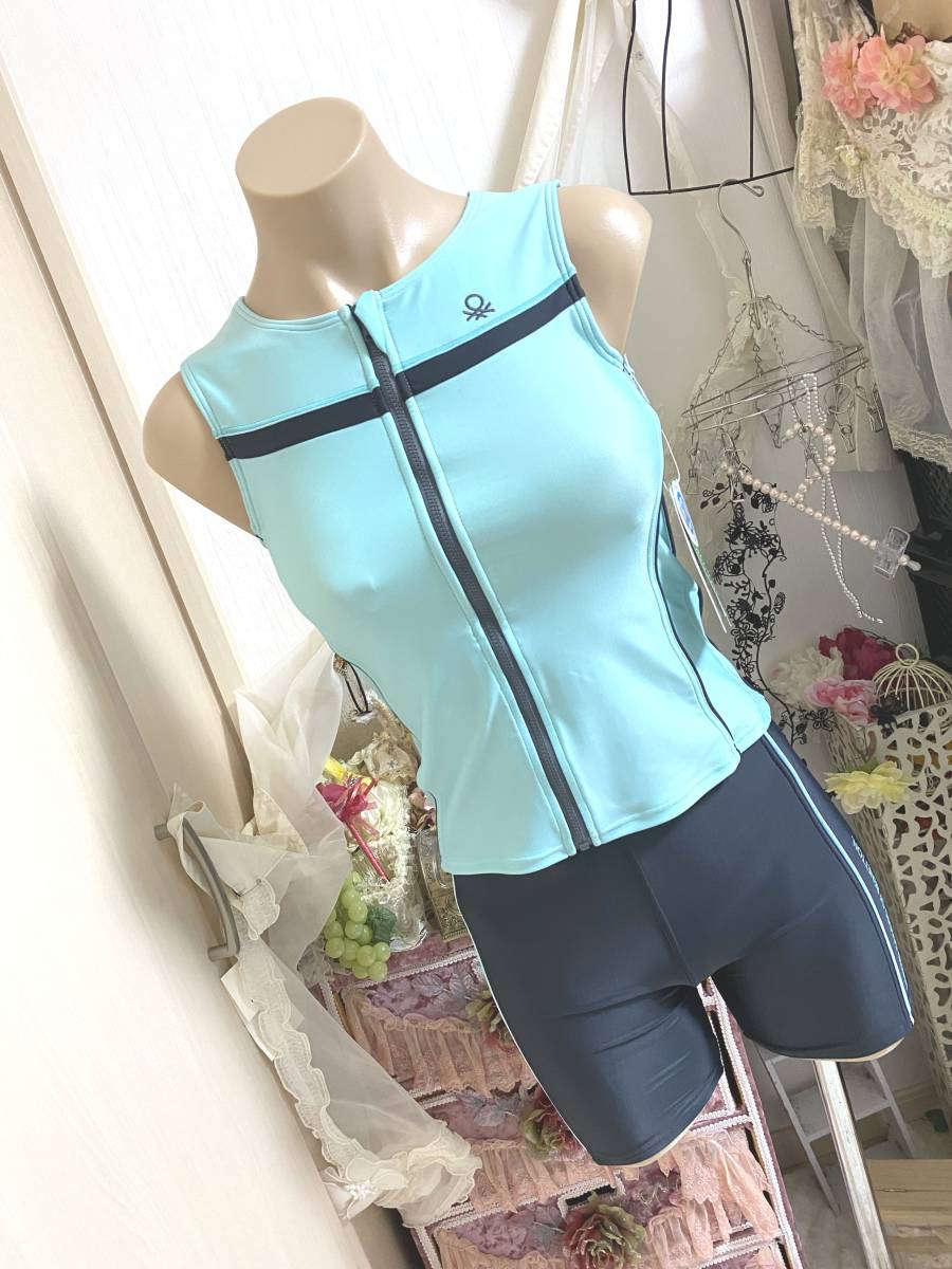 > レディス水着7S:ニッキー【ベネトン/BENETTON.】フルジップノースリーブ水着*フィットネスタンキニ水着:ミント