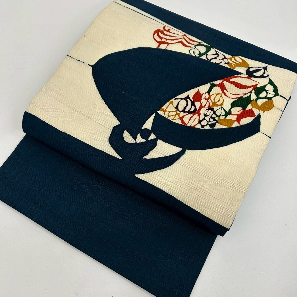 - 名古屋帯 藍染 上品な染め 紬 九寸 正絹 着物 W-5073