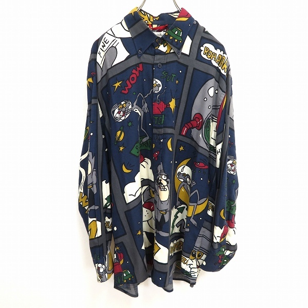 > #ax カステルバジャック Castelbajac 長袖 シャツ L 紺 マルチ ピンクパンサー コラボ イタリア製 ヴィンテージ メンズ 959546 k01