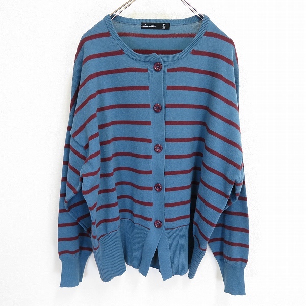 - #a アズノゥアズドゥバズ as Know asde base カーディガン 3 青系 赤茶 ボーダー ニット アズノウアズ オオラカ レディース [945457] k01