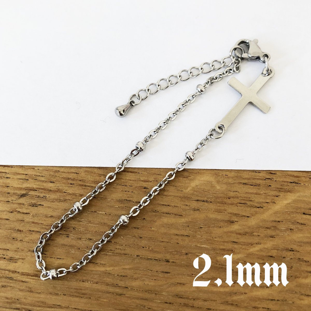 - ステンレスブレスレット 十字架 クロスチャームブレスレット 全長約20cm(17+3cmアジャスター) SAC01