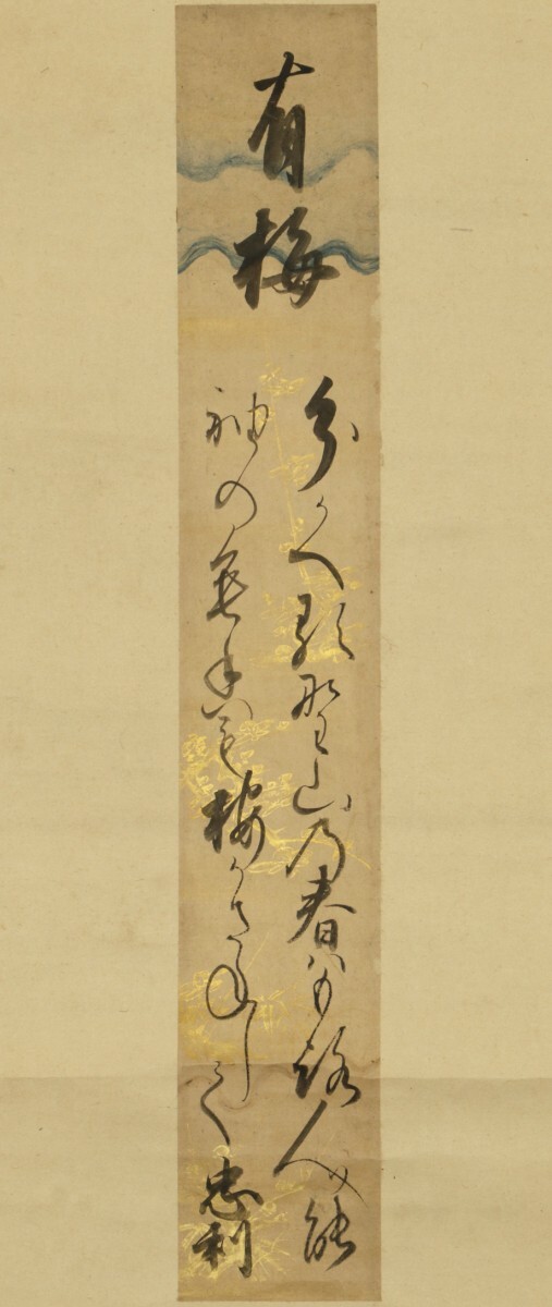 - 【真作】掛軸「細川忠利 有梅 和歌短冊」書 読み有 江戸前期 大名 細川忠興・細川ガラシャ子 小倉藩・熊本藩藩主 大坂の陣 島原の乱