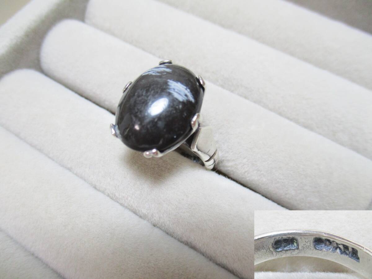 - L042*シルバーリング* 925 ブラックオブシディアン リング /12号 /5.7g /ヴィンテージ【送料込】