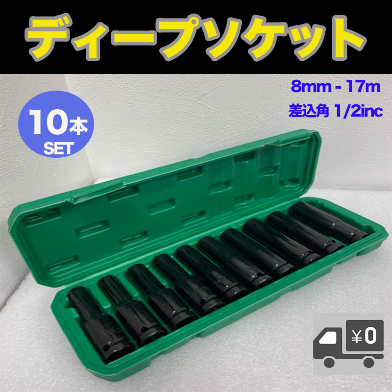 > ディープソケット 10本セット ソケットレンチ トルクレンチ インパクトレンチ 8mm-17mm 差込角1/2インチ 自動車 バイク メンテナンス DIY2